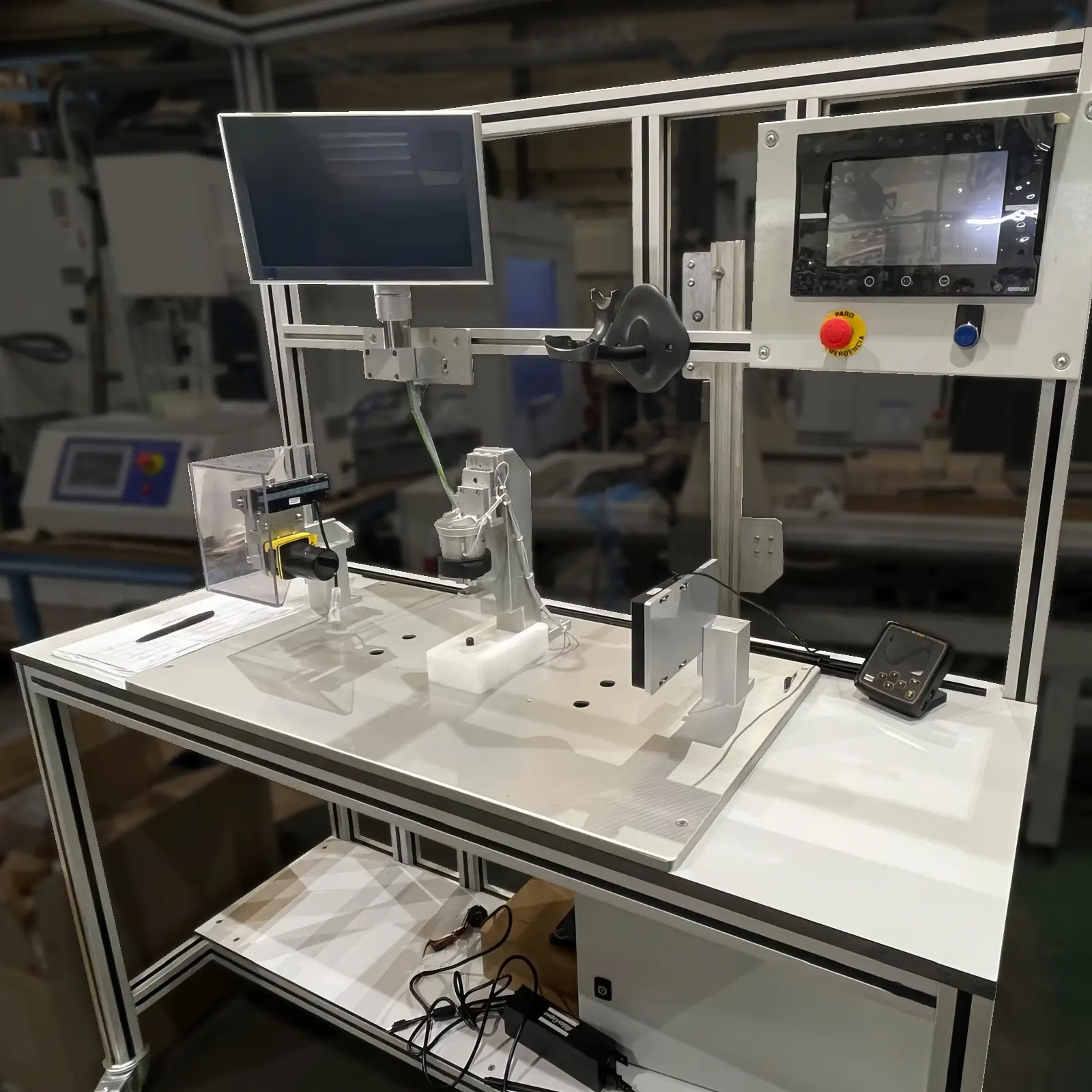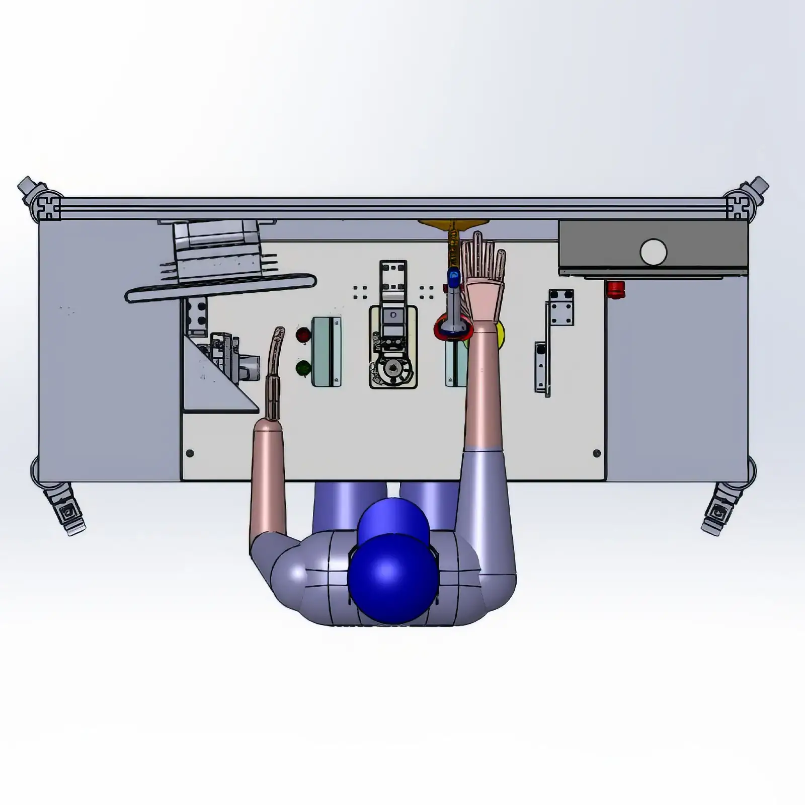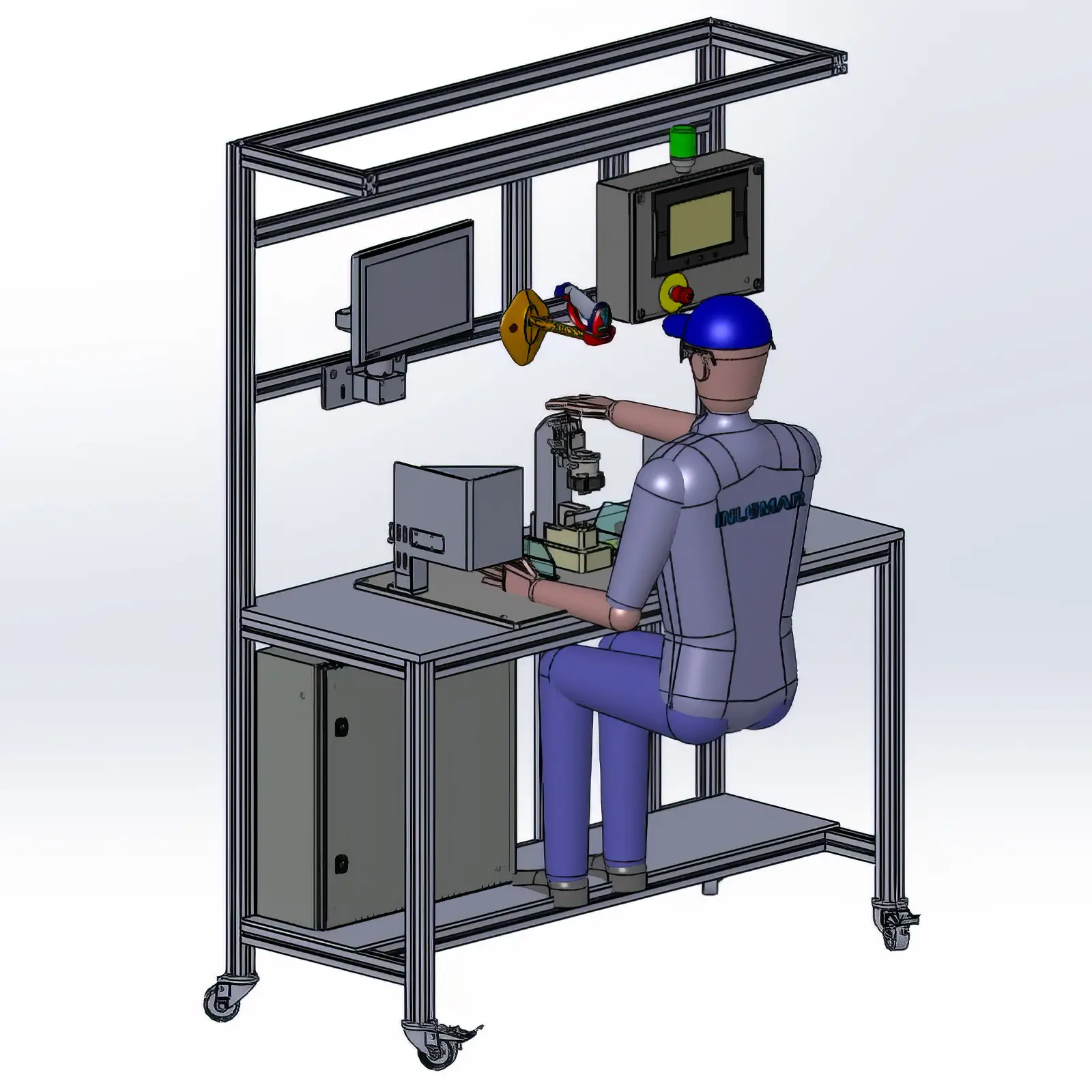 Partiendo del análisis de los equipos existentes y de la experiencia de los operarios, diseñamos un puesto de trabajo compacto, optimizado en ergonomía e integración de sistemas, al que incorporamos los siguientes elementos: