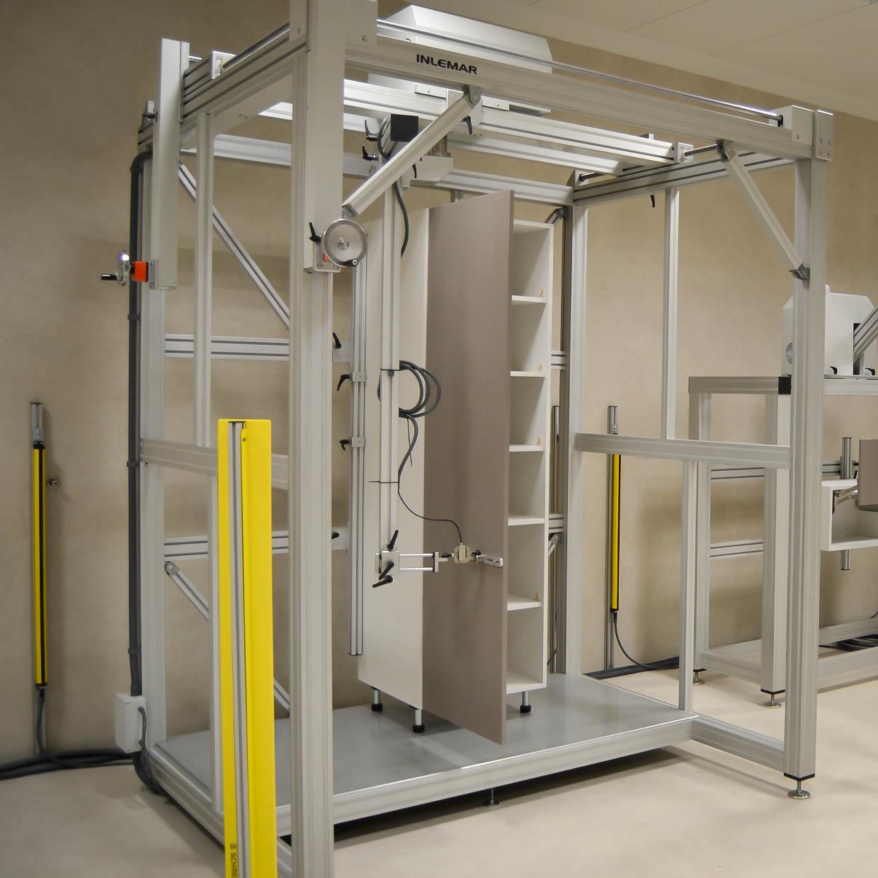 - Equipos para ensayo de mecanismos de apertura y cierre en armarios, cajones y puertas.